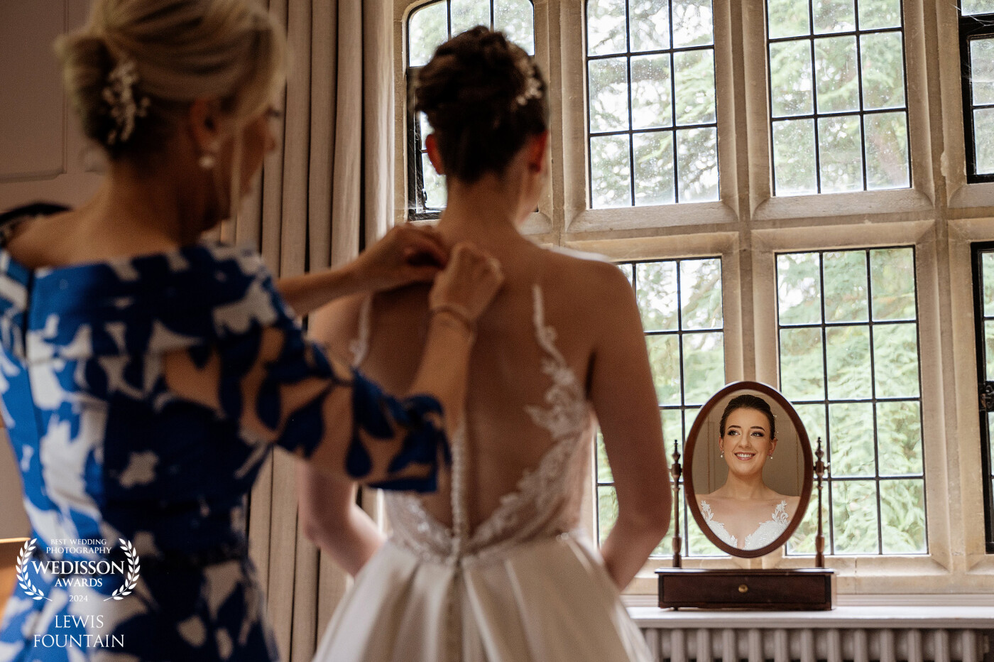 The bridal suit at Lanwades Hall is always filled with the most beautiful light, and it hit Becca's face perfectly for this shot of her mum doing up the bridal gown.