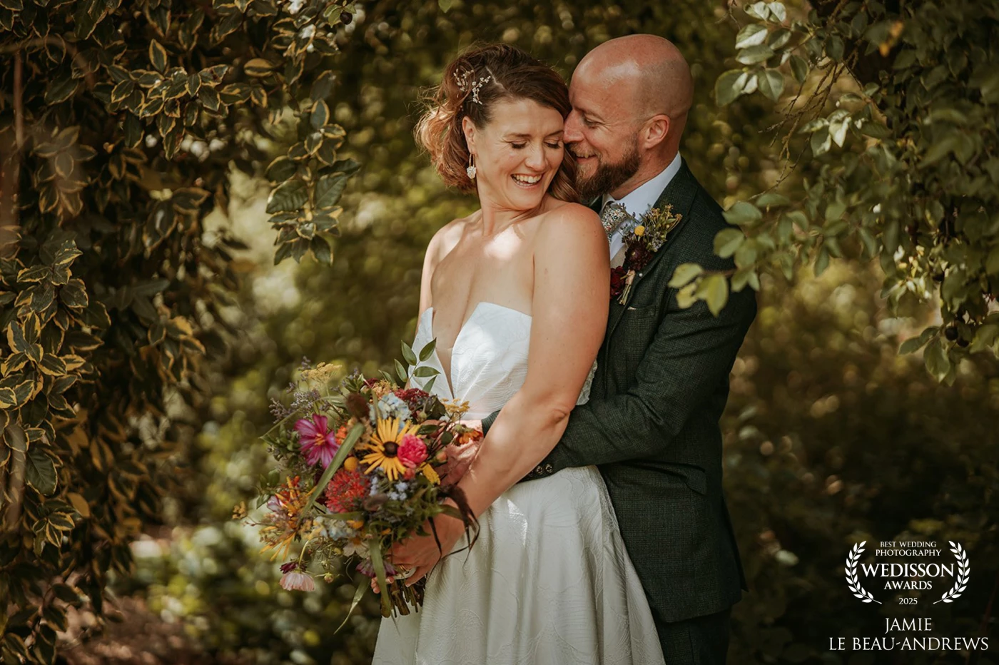 Sarah & Alex’s wedding at The Barns at Alswick was all about keeping things super relaxed. They wanted portraits that felt natural, nothing stiff or forced. I found this beautiful little spot in the gardens where the light was just perfect — soft, golden, and wrapping around them in the most flattering way. It gave us the chance to capture them just being themselves, calm and connected, without pulling them away from the fun of their day.