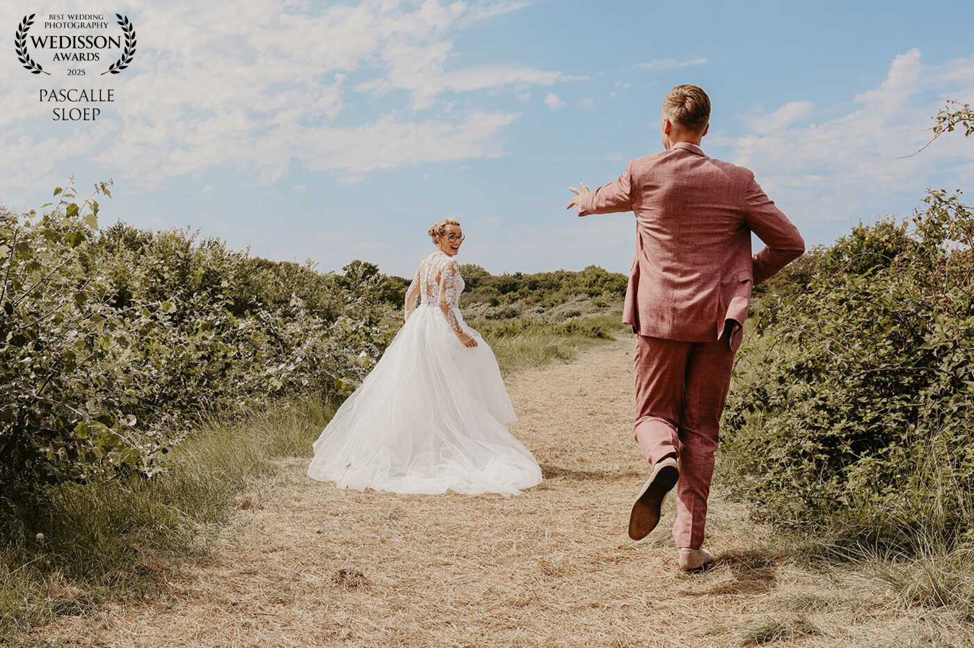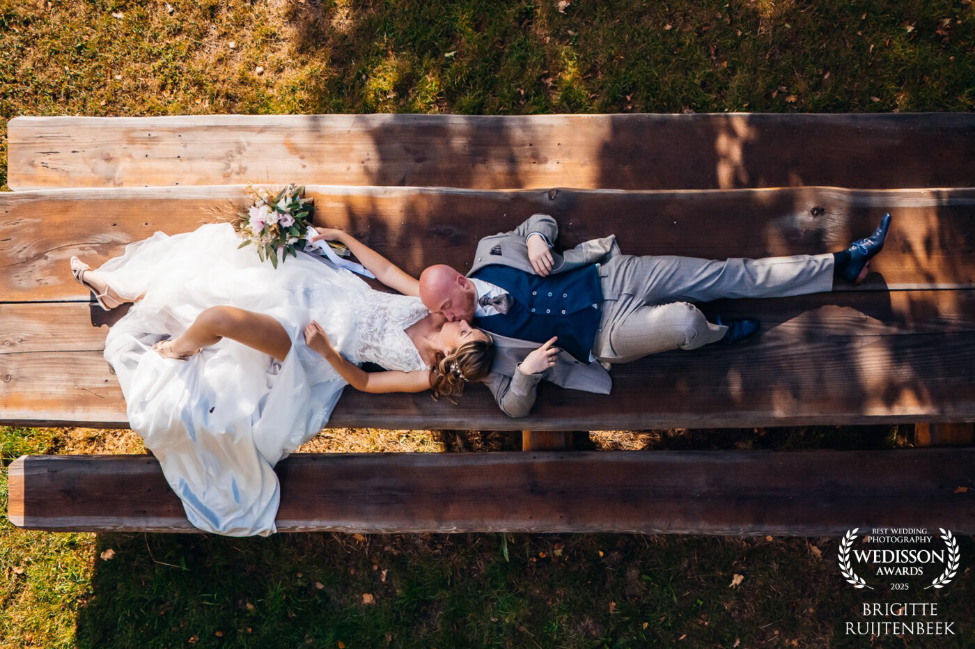 On a warm late-summer day, Joost and Leonie said โI do.โ I photographed this intimate โtรชte-ร -tรชteโ from above with my drone โ the perfect way to highlight the stunning split in her wedding dress.