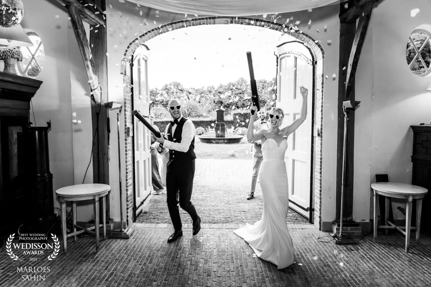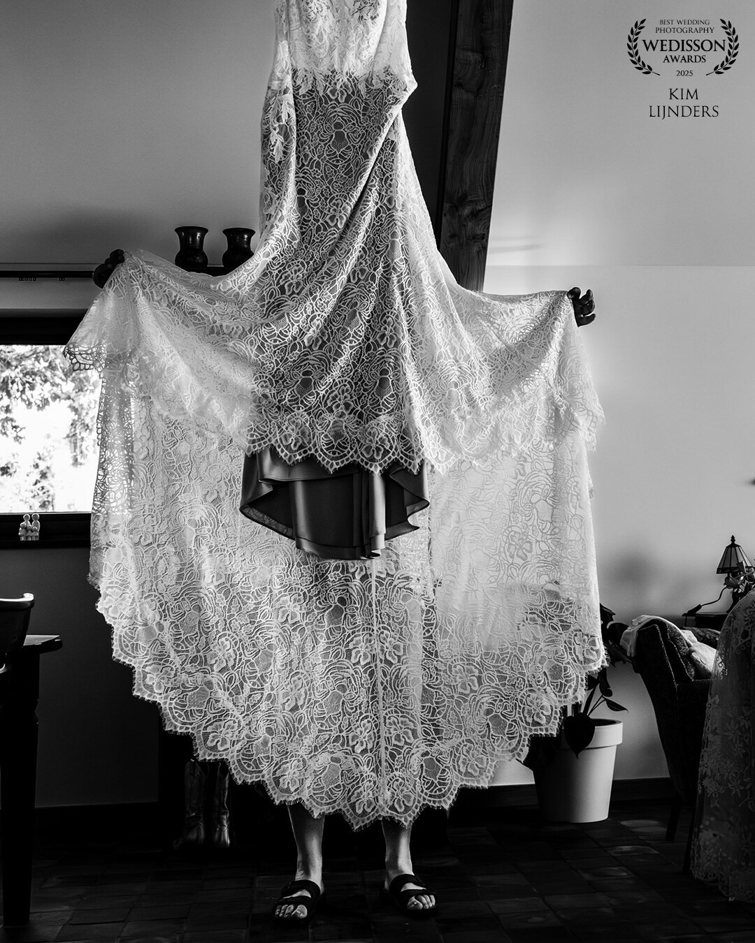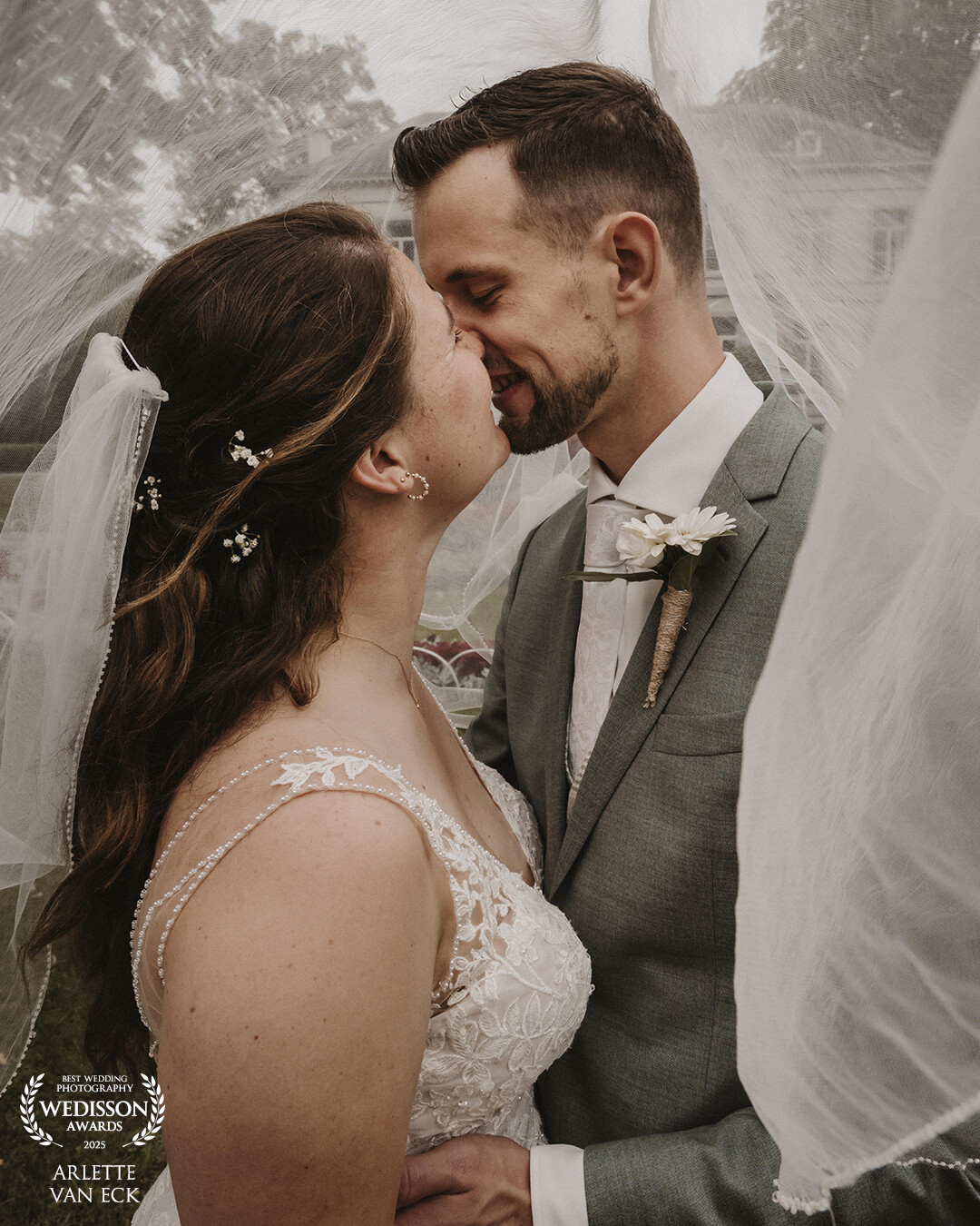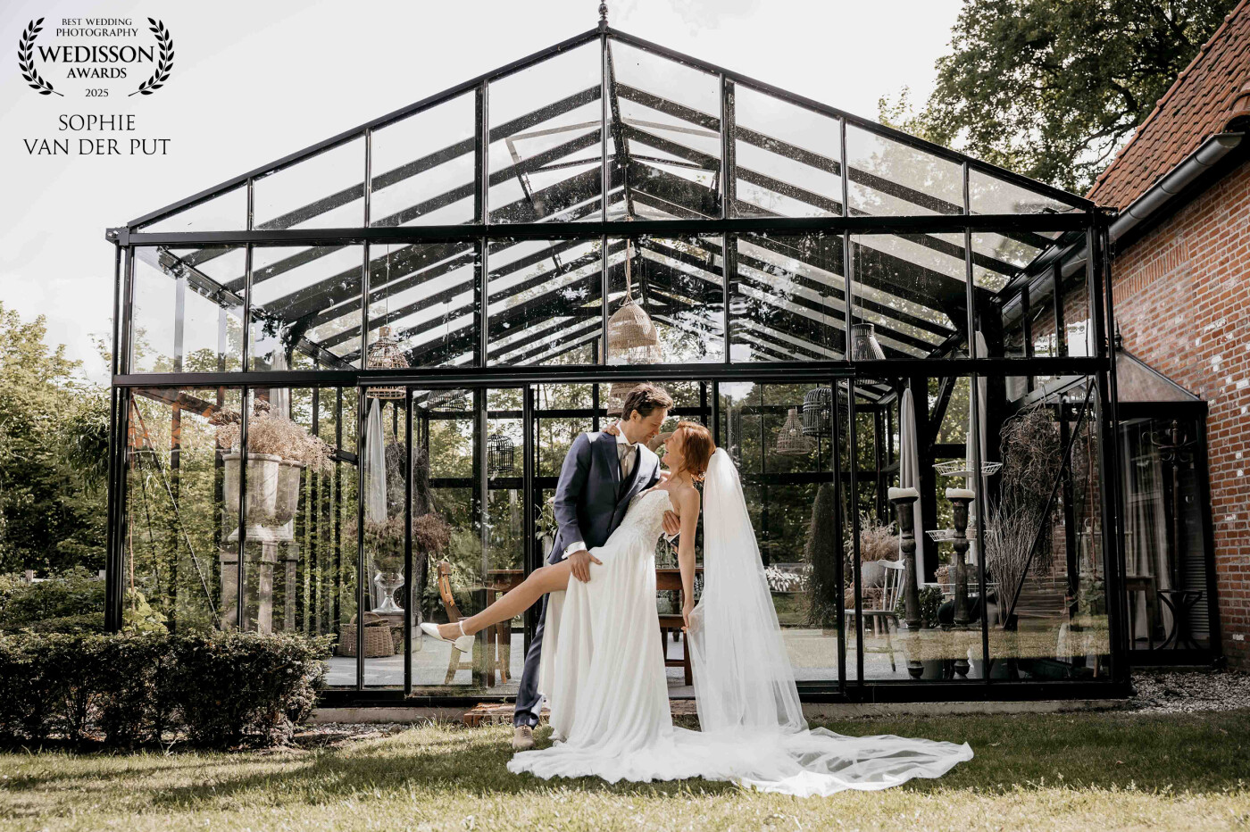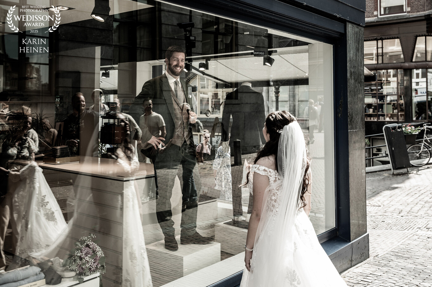 While shooting in the heart of the city of Utrecht we actually passed the tailor's shop where the groom purchased his suit. It started as a joke, it ended in this fun picture with the groom posing as a live mannequin. Kind of a challenging picture to take due to many bystanders reflected in the window as well, but it worked out well. We're pleased it resulted in the jury's appreciation.