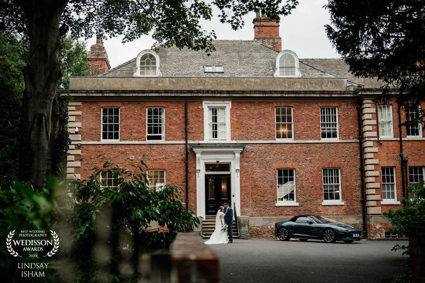 A private moment between this newly married couple in front of their gorgeous venue, Hirst Priory.