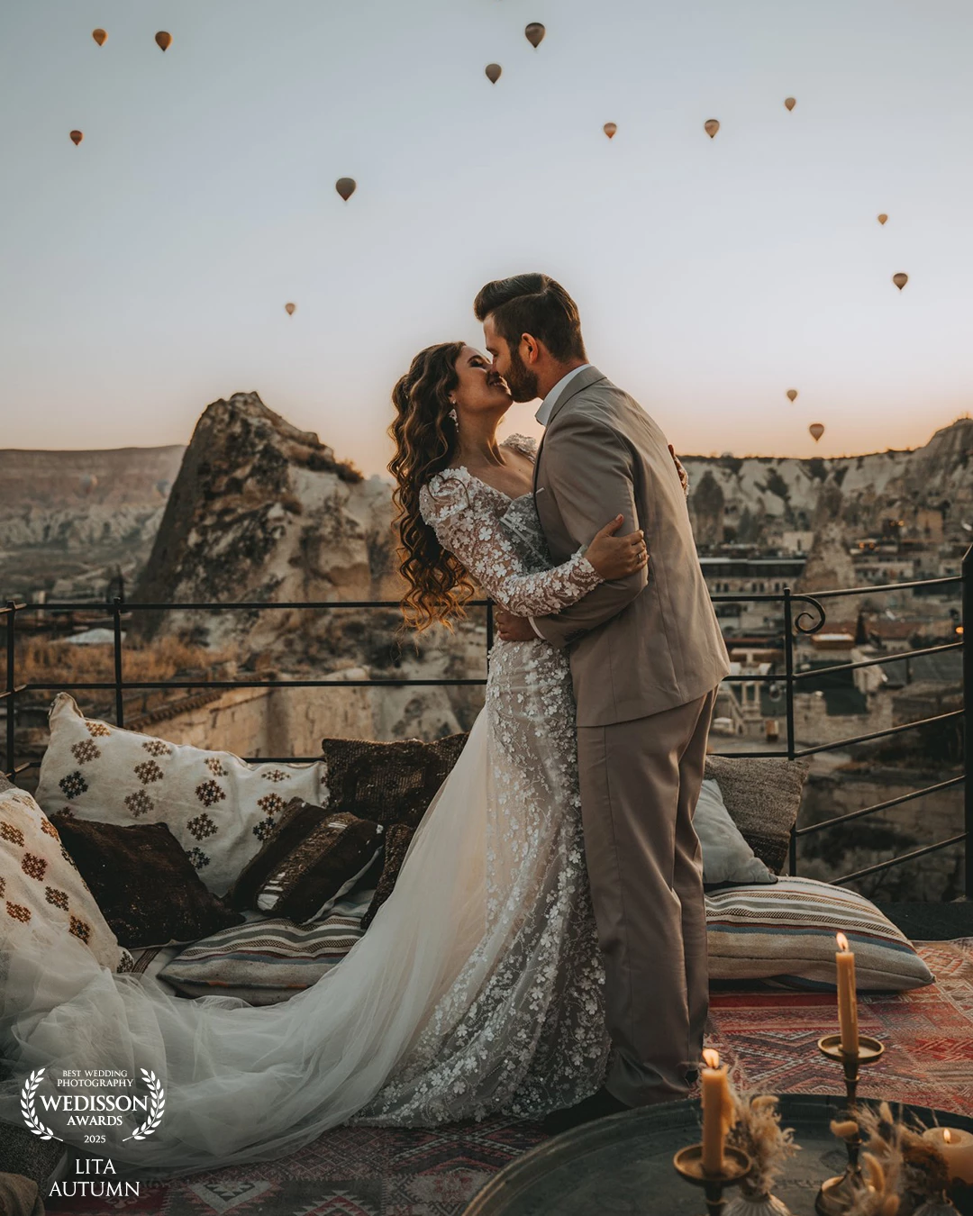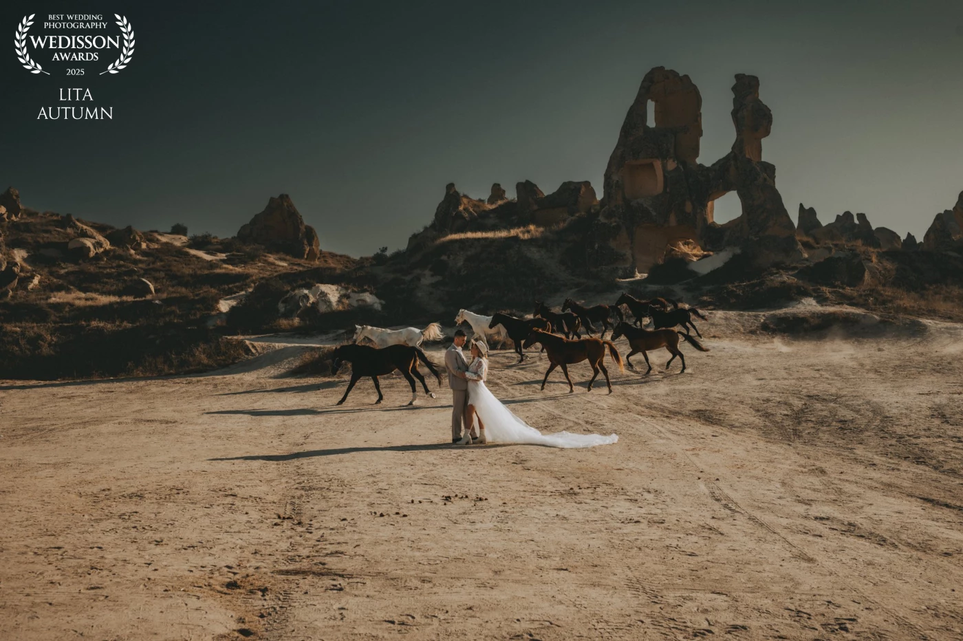 Cappadocia is known for its unique geography, with vast valleys and fairytale chimneys. It's a place where time seems to stand still and where nature has revealed its most artistic powers. The beauty of the surroundings reflected their love for each other, which alone gave them the powerful power to create new horizons together.