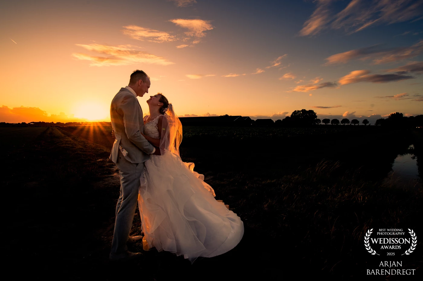 Gli sposi sulla sabbia, ridono come due ragazzi.