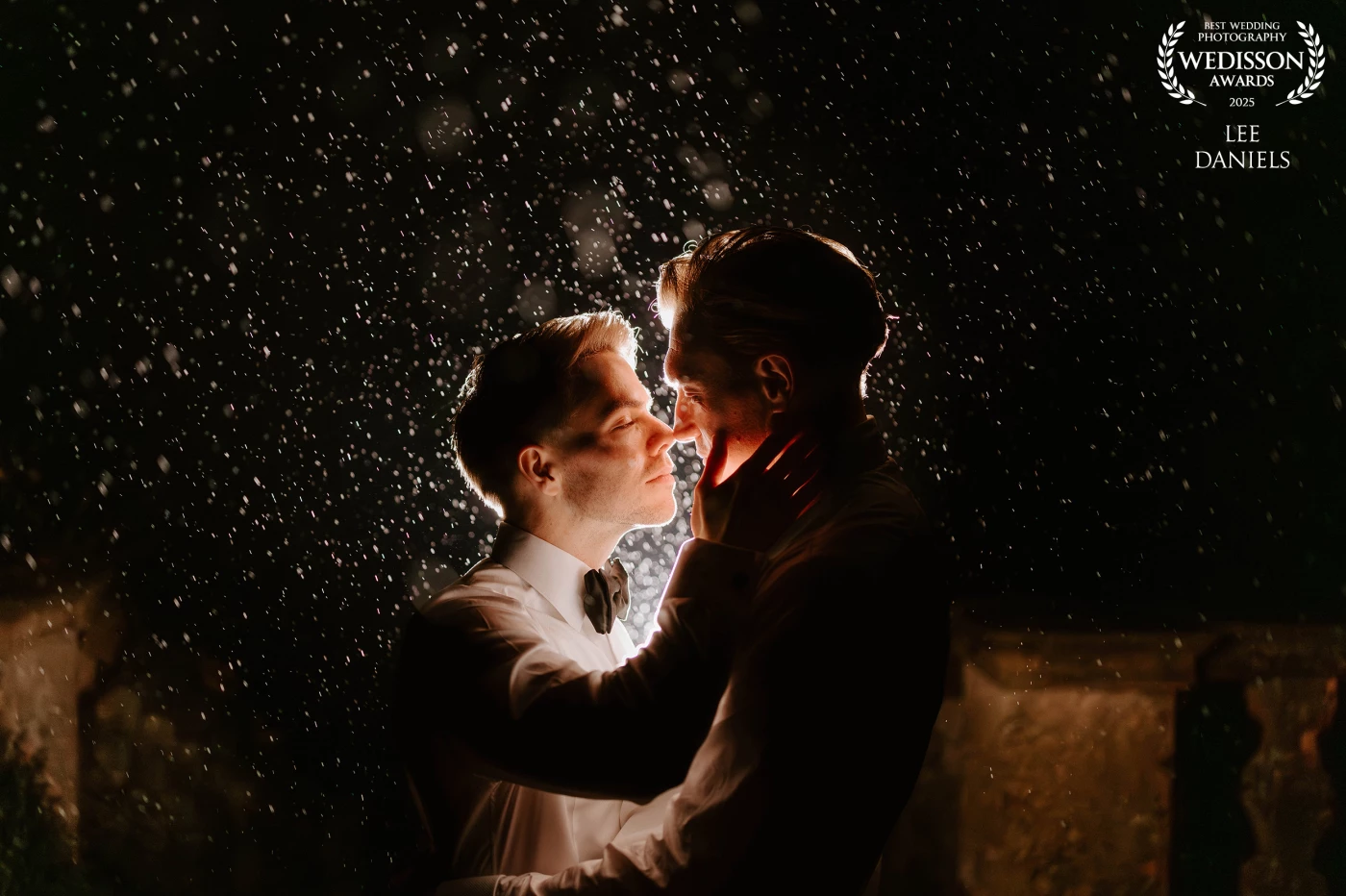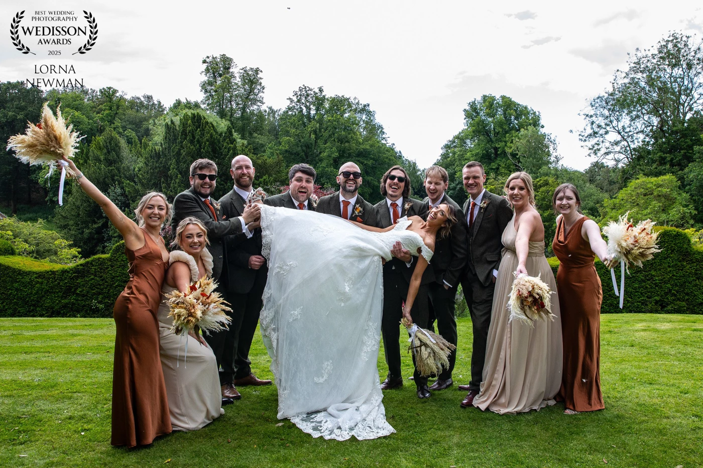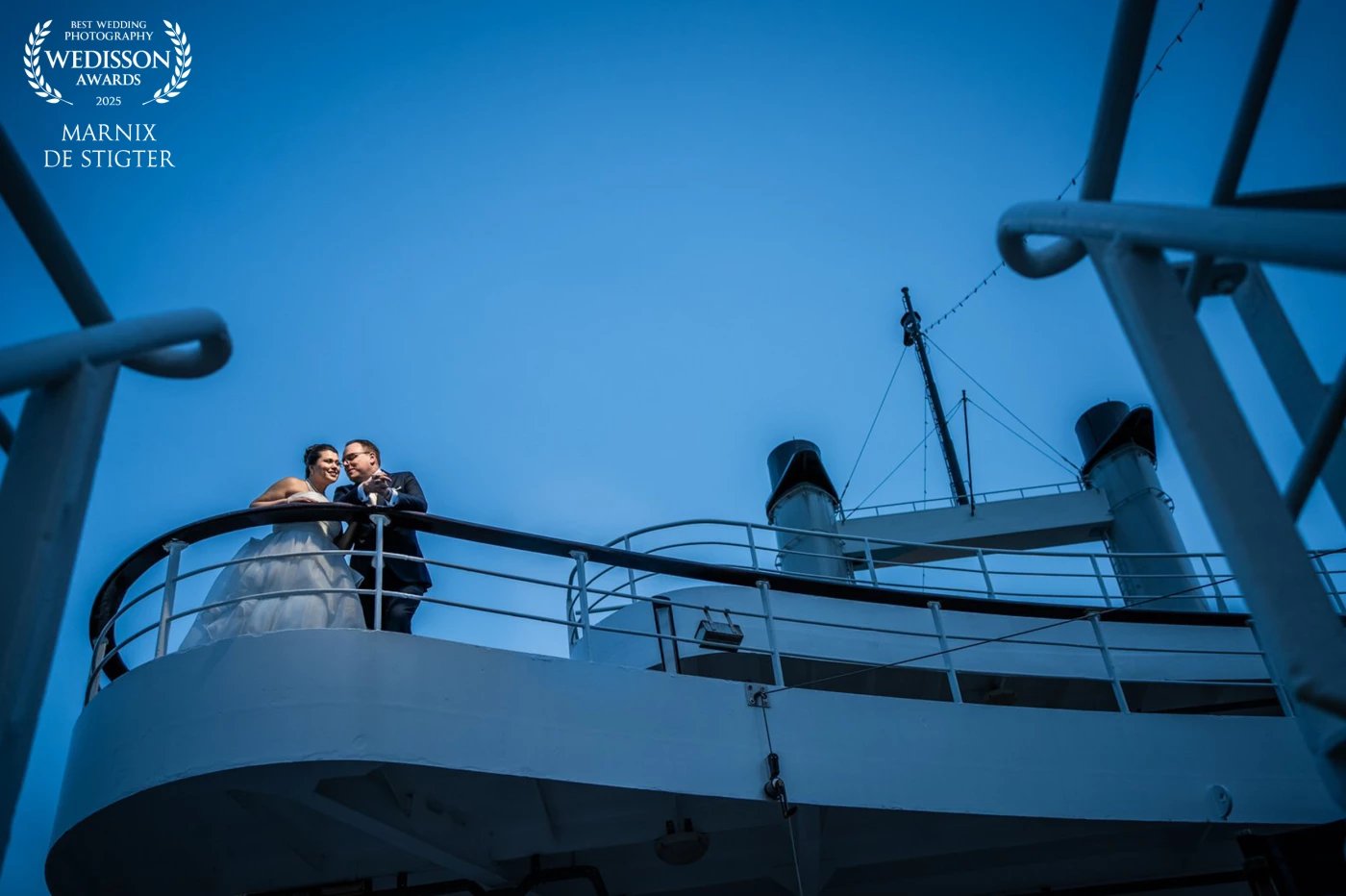 Beautifully created creative photograph from a wedding at The Upper House in Staffordshire, UK - taken from on their staircase and building into the scene the surroundings.