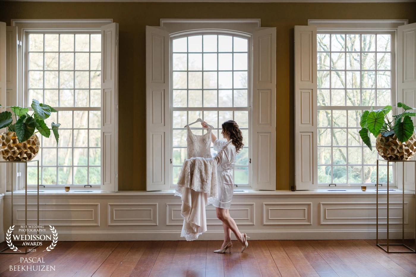 During the getting ready, the bride took her dress down from the window. This was the moment right after. With just a few gentle tips and small directions, we created this moment together.