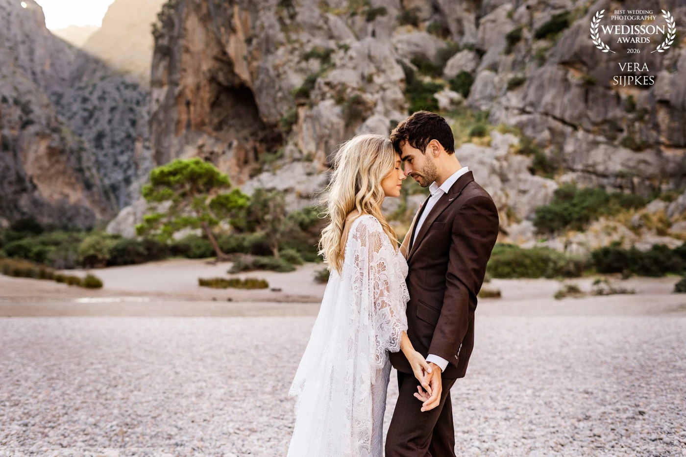 On a beautiful morning in Mallorca I photographed this lovely couple at this astonishing location. The sun popping from behind the mountains finished this wonderful picture.