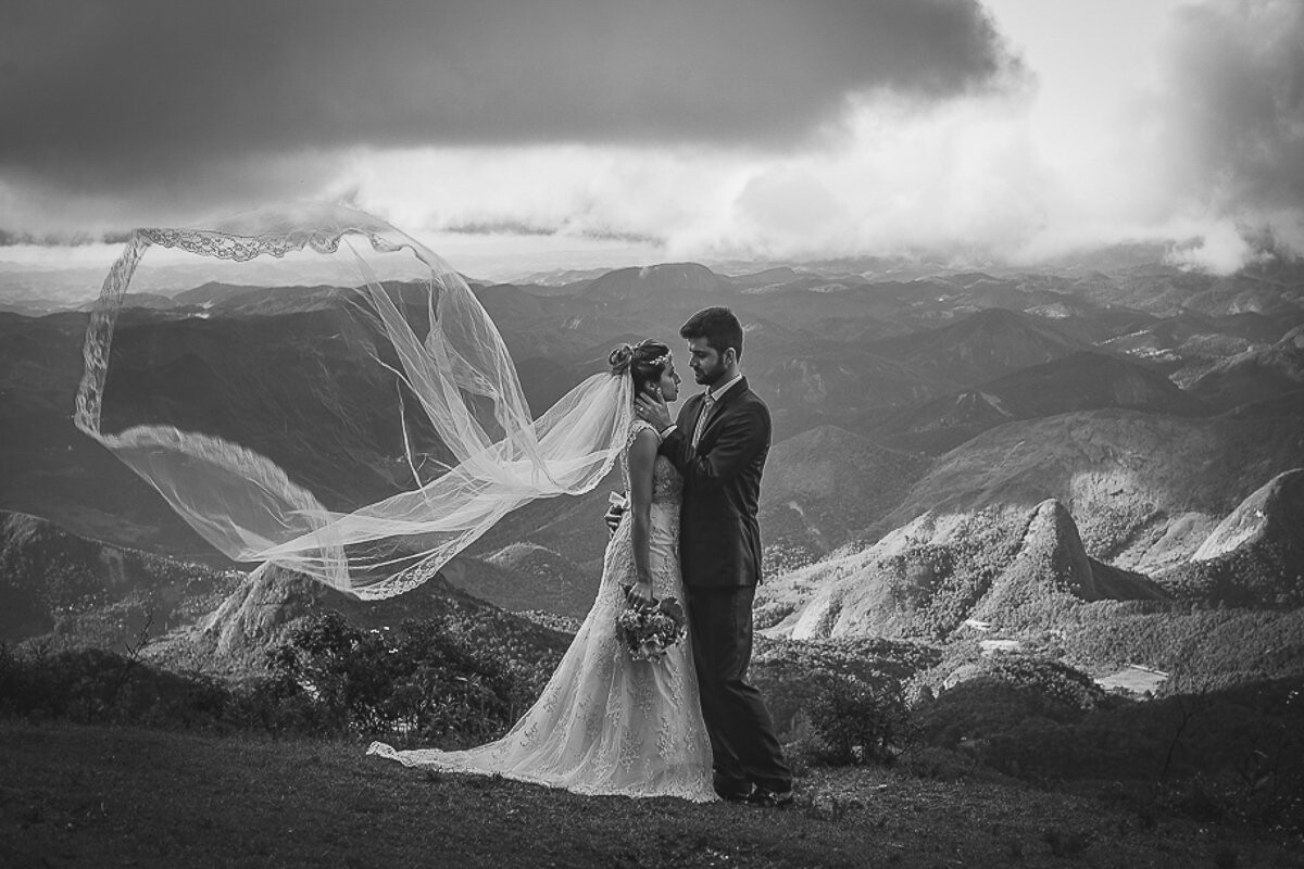 The Caledonia Peak is one of the highest elevations of the Sierra with 2257 meters of altitude , and has one of the most beautiful views of Nova Friburgo . Months after the wedding of Maiara and Jonatas , they accepted the idea " half-mad " . We climbed a car stretch , walk more than 50 minutes , it rained a little and the temperature changed very fast. But all the effort was worth it , we did amazing photos!