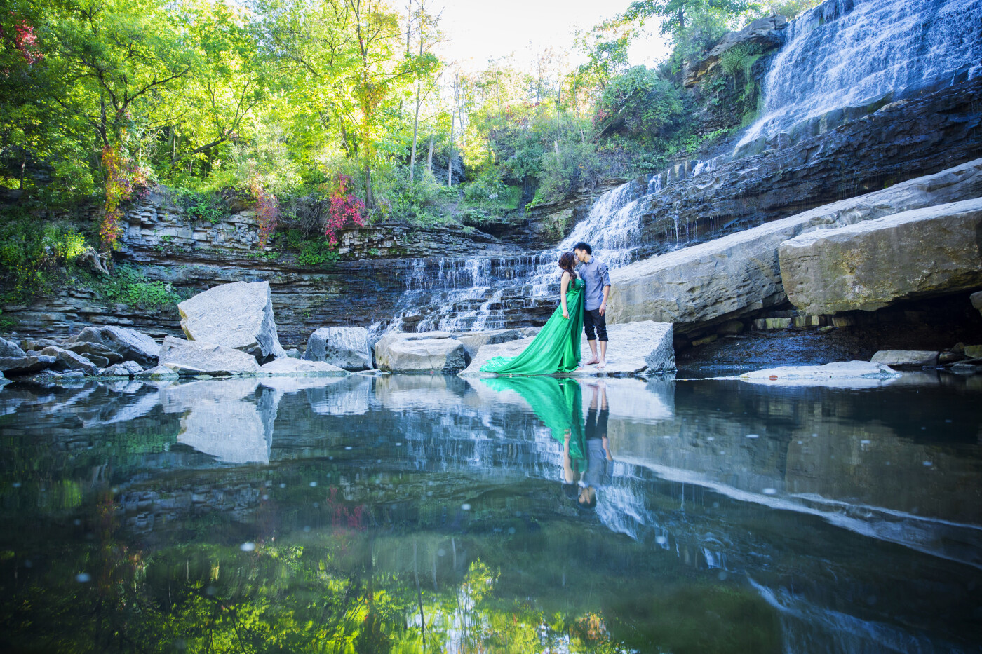 Going to a waterfall during the fall for a photo session did not turn out to be a great idea when we arrived. Half the fall had a lack of water coming down, and the small shift in angle led to this picture perfect discovery!