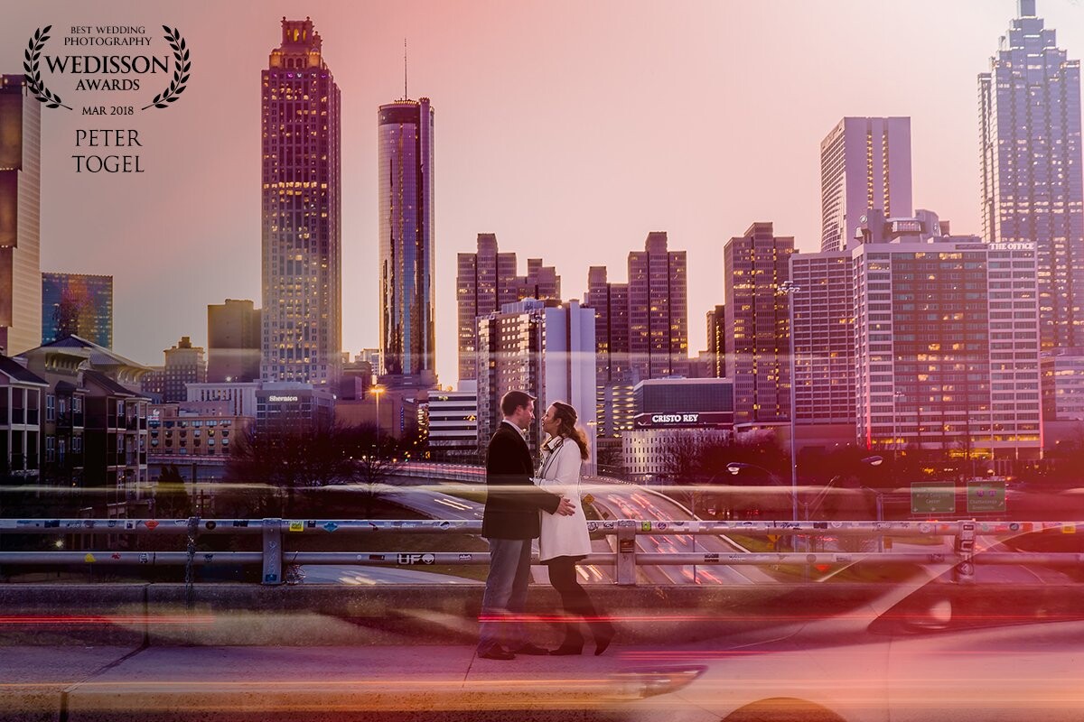 It was a very windy day and cold on the day of shooting, but I had this place as a plan B which we ended up shooting there. It was the best decision to get in and capture great photographs for this couple. The flash was not allowed and I wanted to create some effects with lighting. Then I tried to think of something to make the photos more interesting. I put them in a great pose, very intimate with the amazing architecture background to create this beautiful shot.