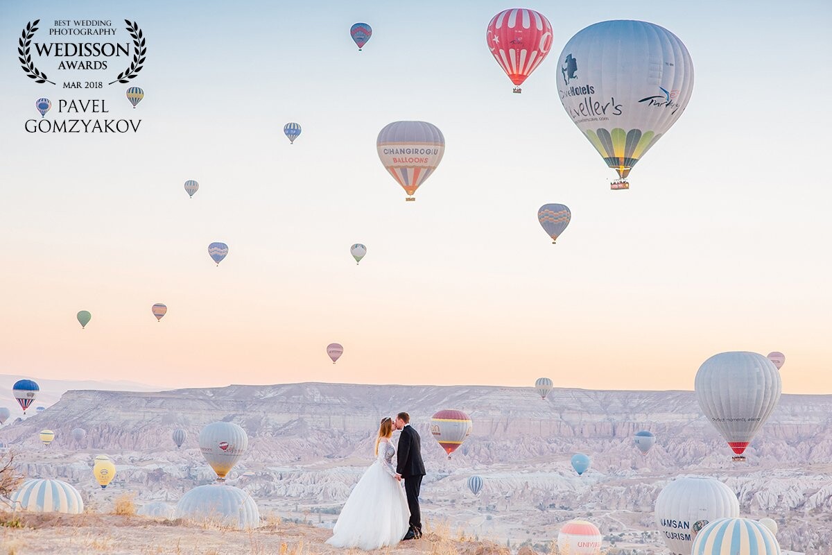 Cappadocia is one of the most romantic places on earth! Vlad and Karina love each other very much. The feelings of the newlyweds are also light, like these hundreds of balloons in the sky above the picturesque valley.