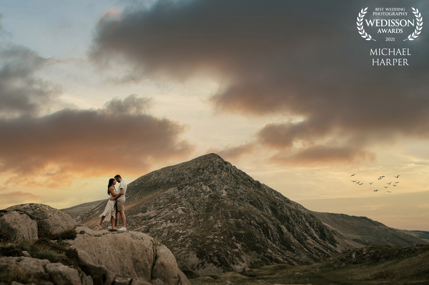 photo in which the birds create an arrow towards the couple as if to indicate the direction of the gaze of the viewer. I love having a lot of area on the heads, like in this case