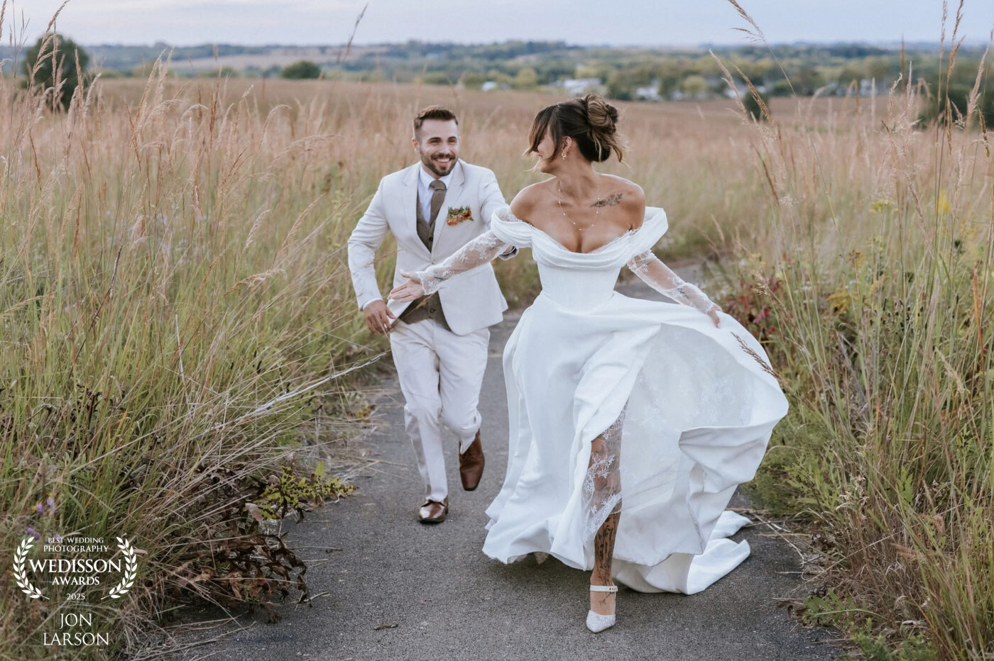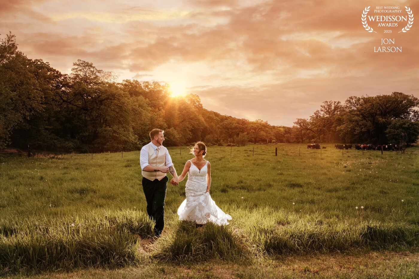 126th CollectionJust a beautiful couple running in love!! Midwest always presents beautiful sunsets and fields with cows to help add to the beauty!