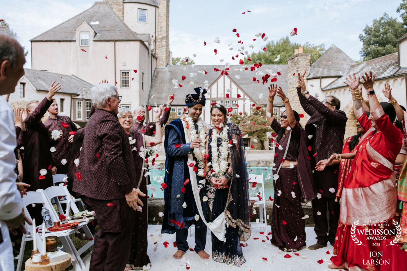 128th CollectionAmish and Hannah getting showered with the traditional rose petal throw! Unbelievable moment!
