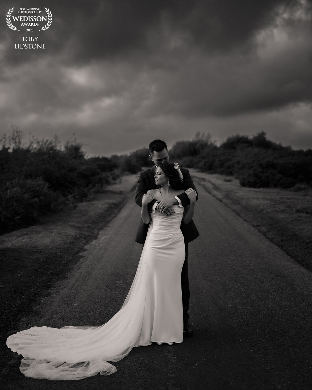 128th CollectionI just love creating scenes with big contrast in light. It rained all day for this wedding, but these two were stars and embraced the weather for some outdoor shots, I like the fact the road is wet and creating a reflection :)