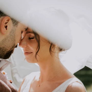 124th CollectionA quiet moment beneath the veil, just the two of them and everything they feel.
