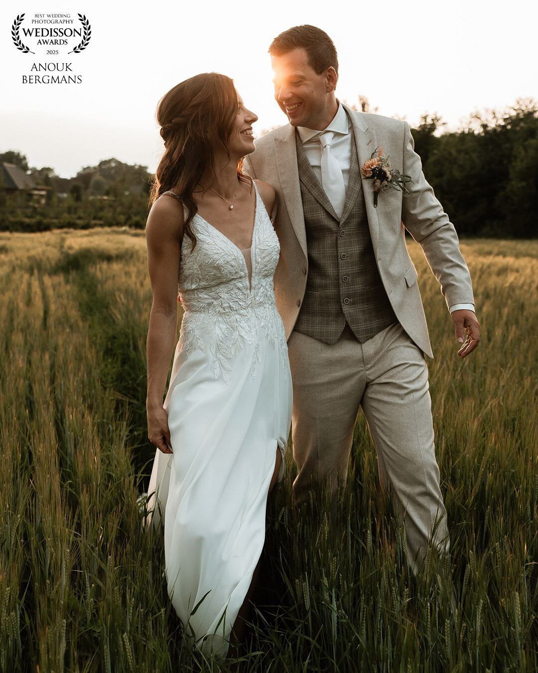 A cornfield they planted themselves in their parents' garden. A wedding that perfectly suited who they are as a couple, no wedding cake but a champagne toast followed by a delicious BBQ and a live band during the party. Finally, they quickly caught the sunset in the cornfield. As a wedding photographer, I can only enjoy a day that is completely unique!