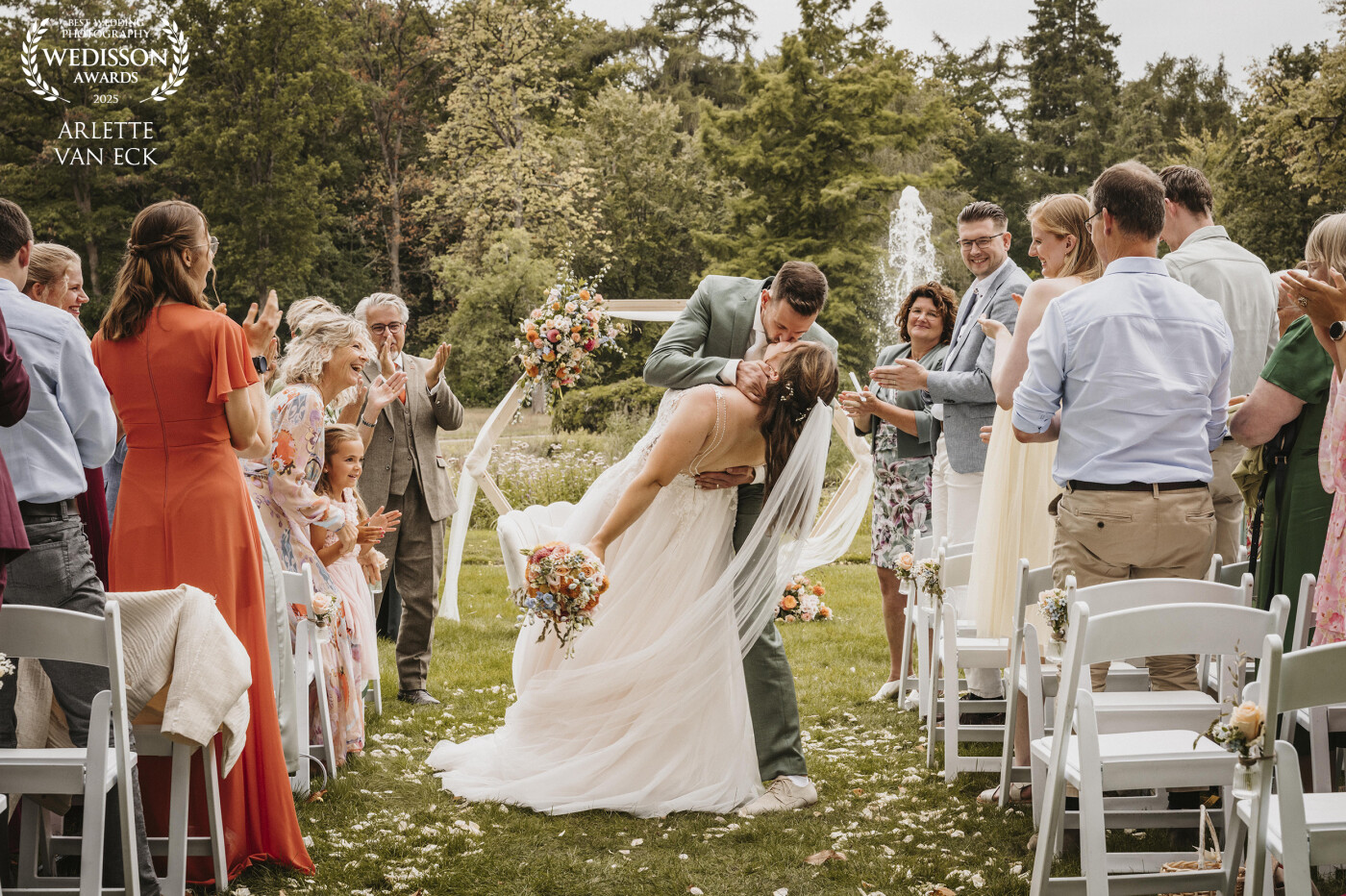 125th CollectionAls je net getrouwd bent, en je de ceremonie even af sluit met een geweldige liefdevolle kus. Vier de liefde samen en met jullie dierbaren.