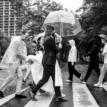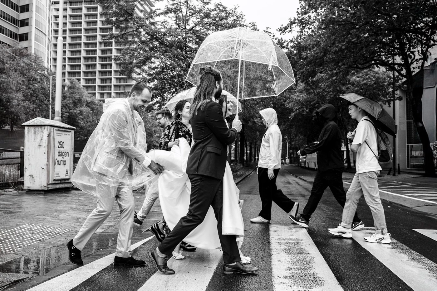 Livia and Christiaan strolling down the Coolsingel (Rotterdam) after their ceremony in the City Hall. The rain didn’t matter at all :)