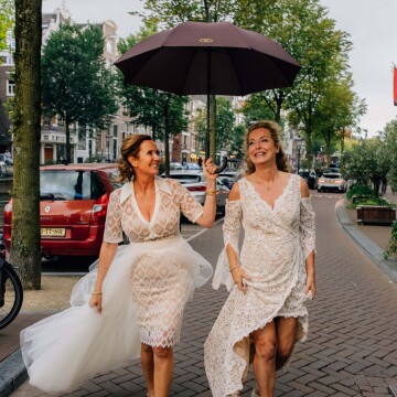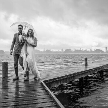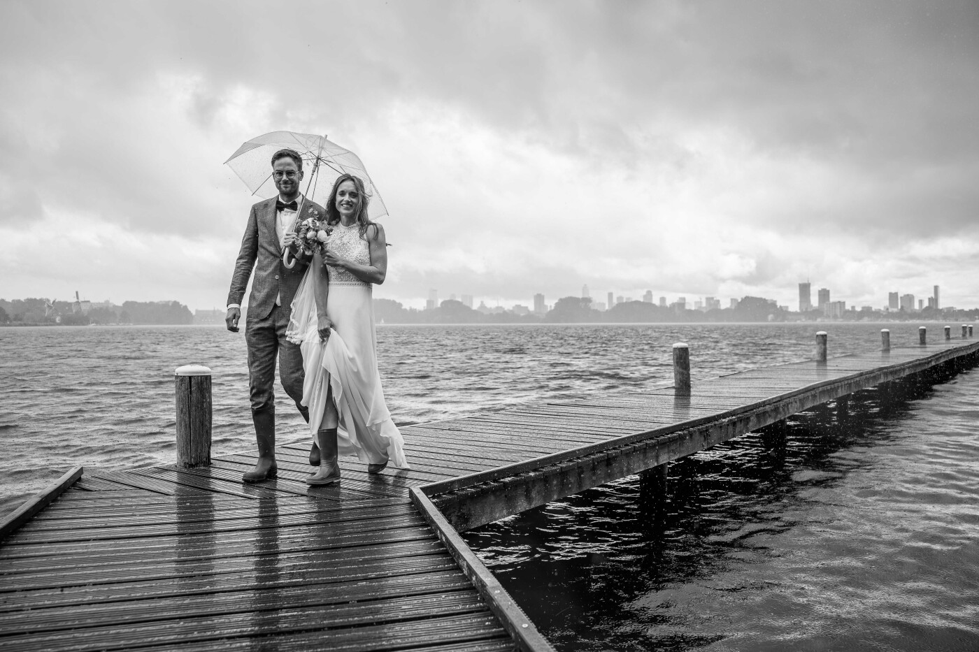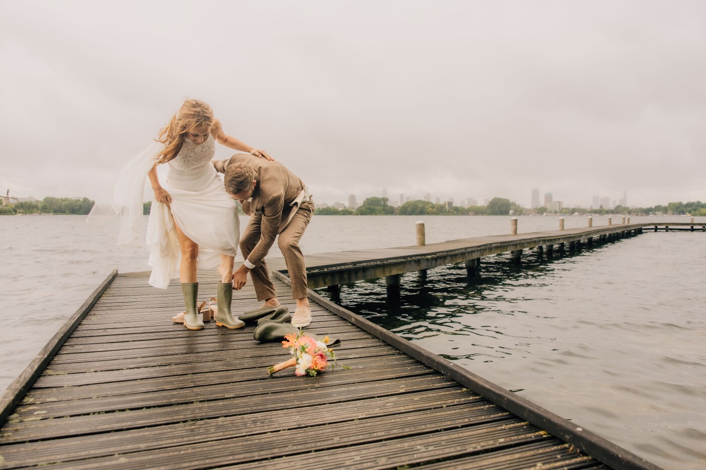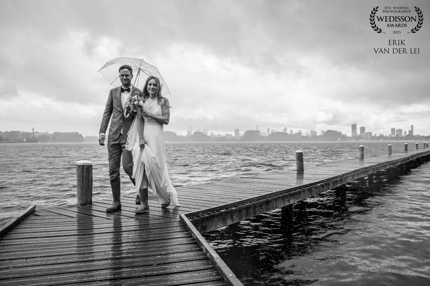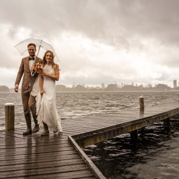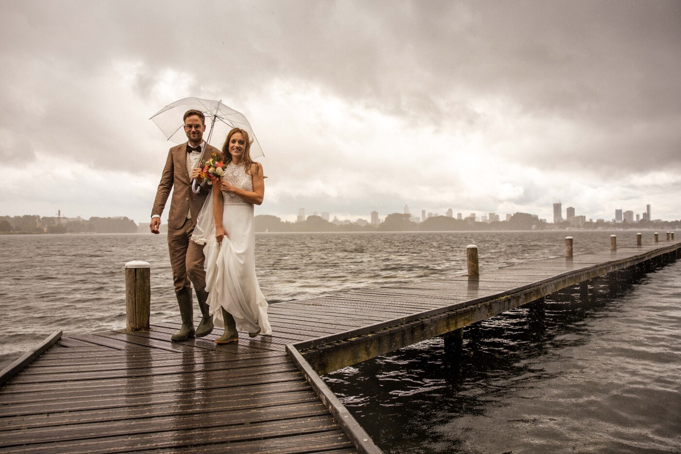 A true Rotterdam wedding; dramatic skies, city skyline, and yes… rain.