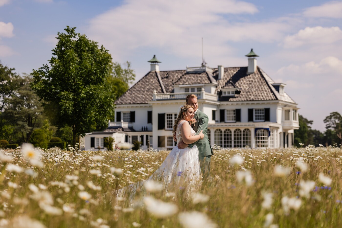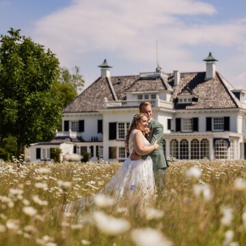 116th CollectionMerle and Matthijs had a beautiful wedding shoot in the flower field at Landgoed Zonnebeek, capturing their love amidst vibrant blooms.