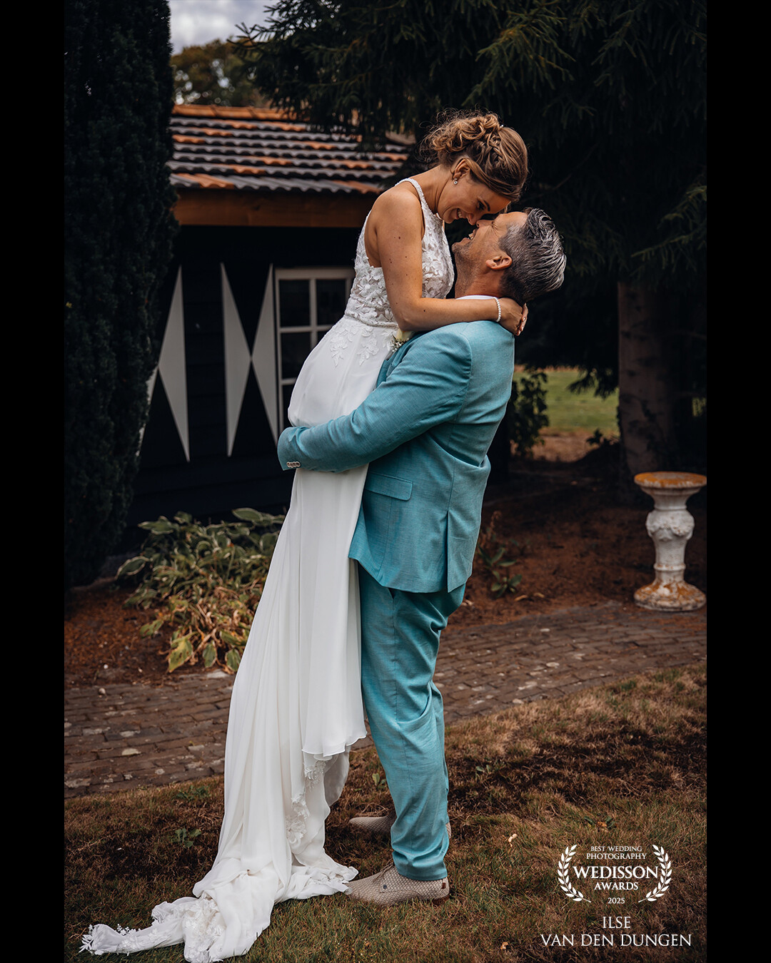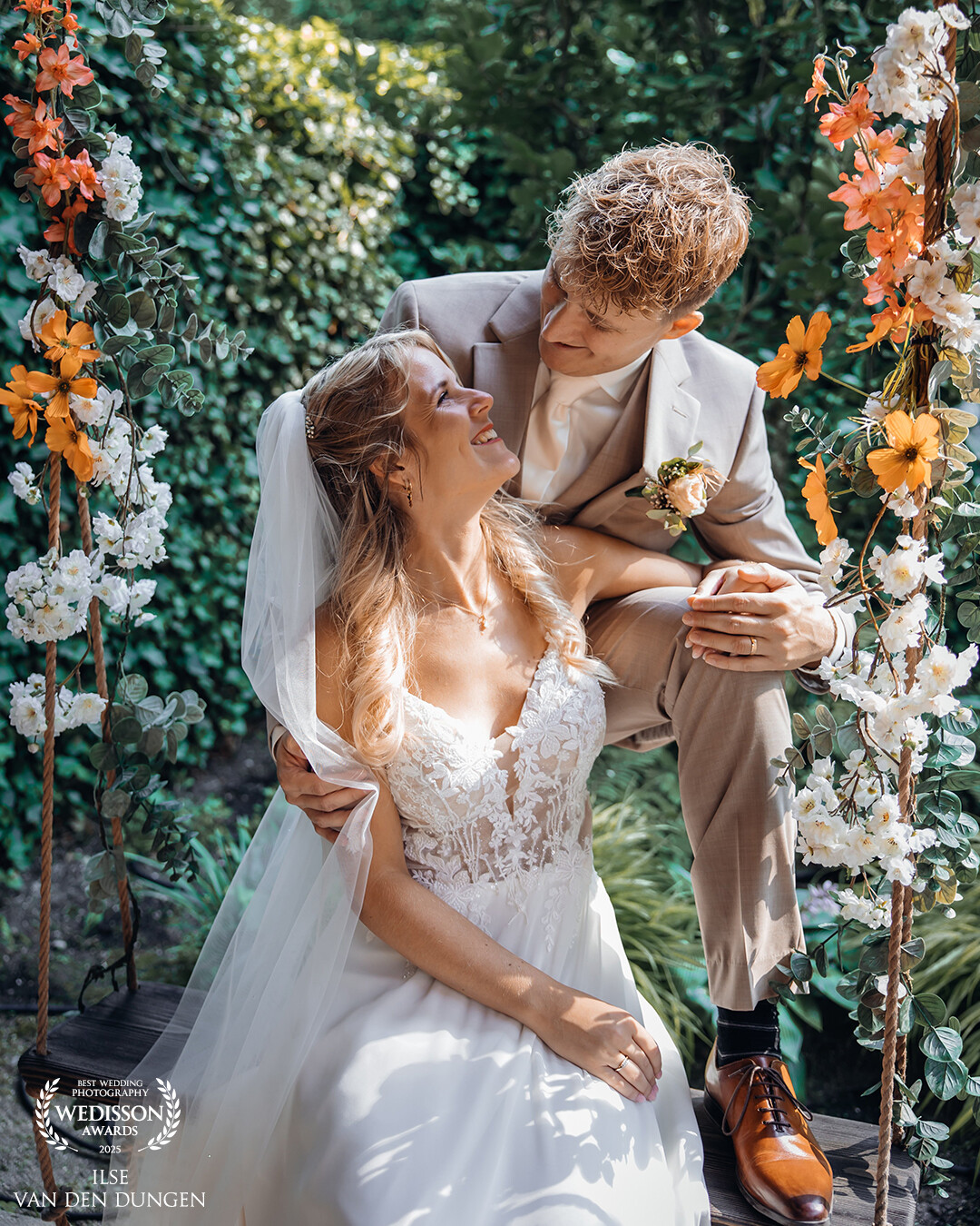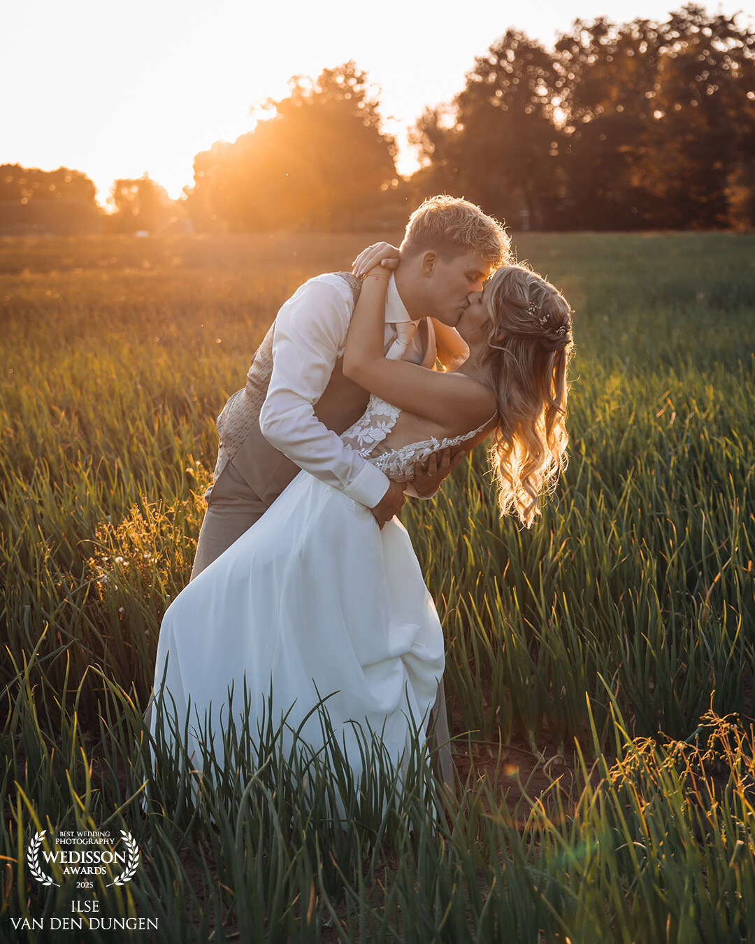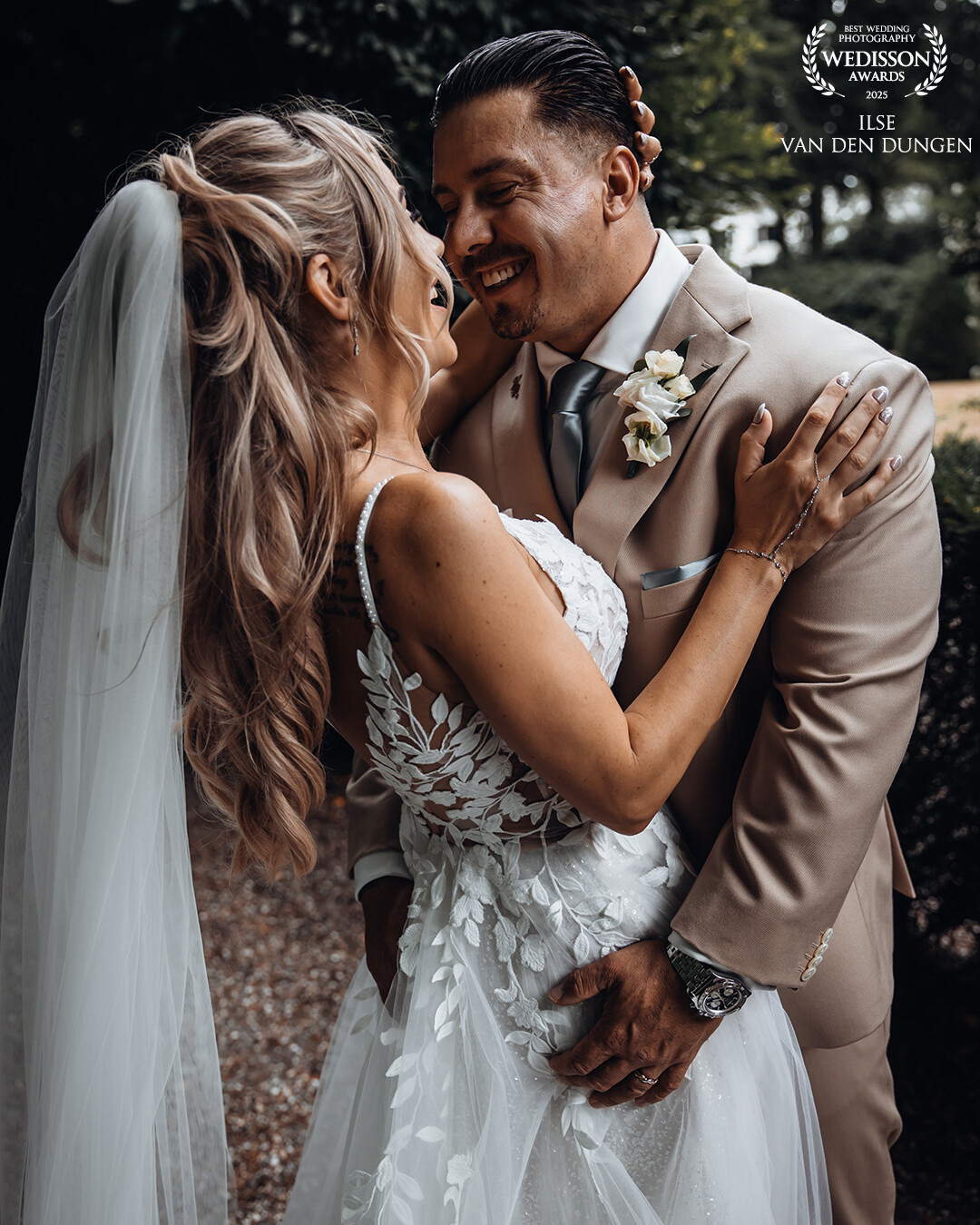 Their love and happiness is almost popping out of the photo. The windy hair and the trees in the background are presenting the cloudy weather and the Dutch summer this season. We were so happy that there was no rain and that we were able to do a photoshoot in this area.