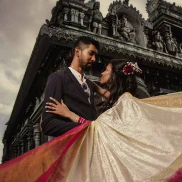 The required skills and techniques to capture the beauty of this photo were derived from the use of perspective control to capture complete spaces to know where and when to find the shots. The couple, Padmini and Krishnen decided to have their outdoor engagement shoot at this beautiful location and enlisted the help of team Bhavesh Creations for celebrating their beginning traditionally…