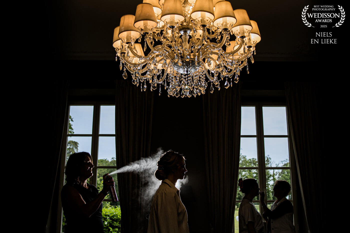127th CollectionA wedding in France where the bride is getting ready in a beautiful room with a chandelier.