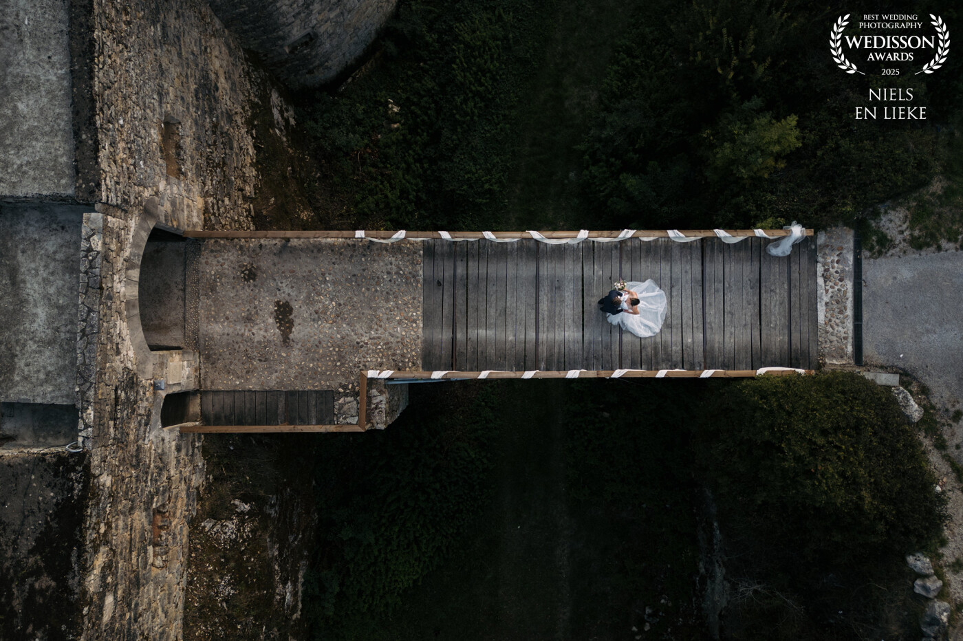 128th CollectionA wedding couple on the bridge of their own private castle in France!