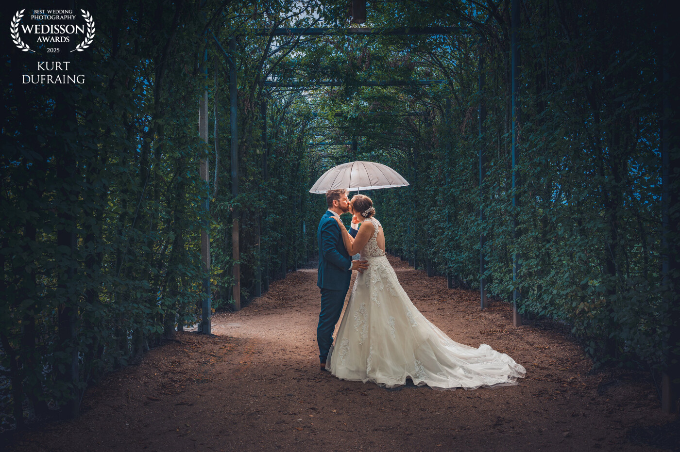 111th CollectionThere is something mysterious about this location in Diest. Despite being located in the center of the city and surrounded by hustle and bustle, it exudes tranquility and history. The umbrella, which was actually used more for shade, beautifully accentuates the couple in this mythical space.
