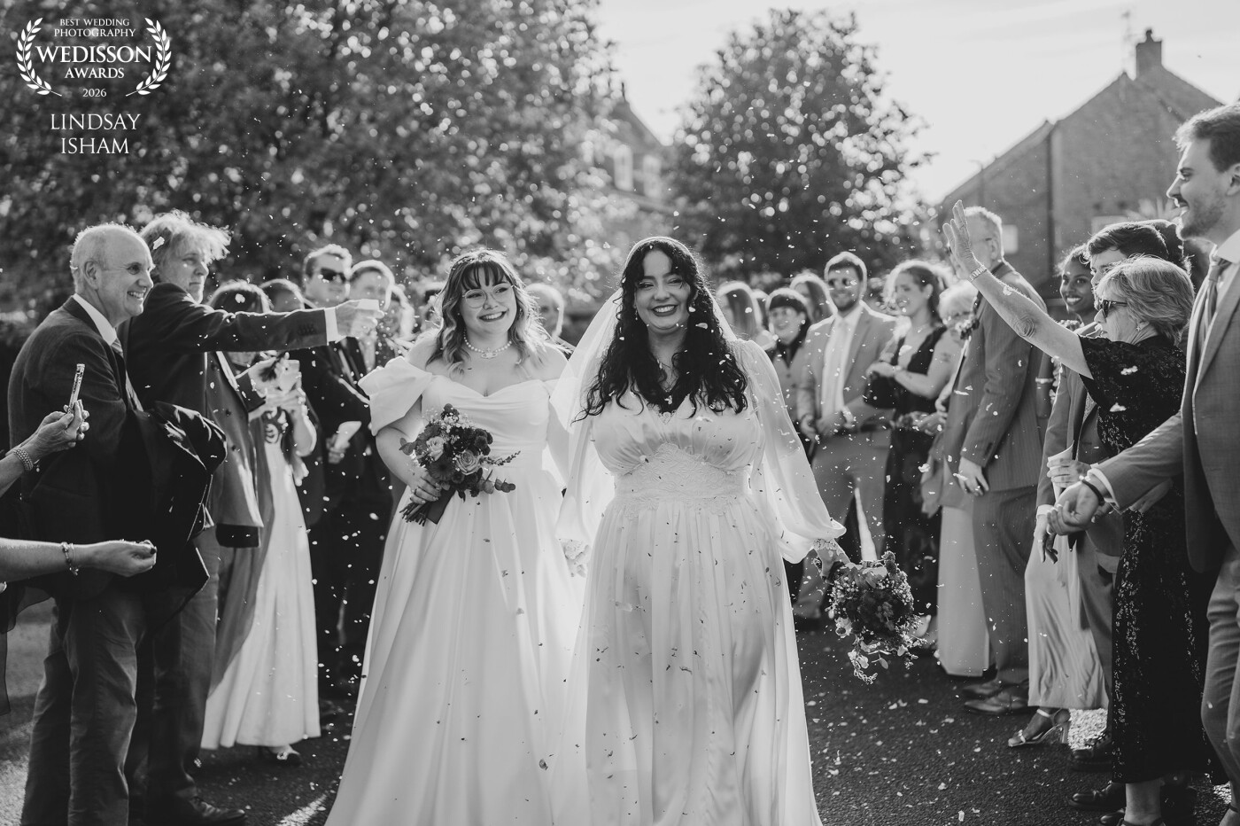 As die hard West Ham fans, confetti got swapped for bubbles for their congratulatory walk as husband and wife. If you are a footie fan, you will know!