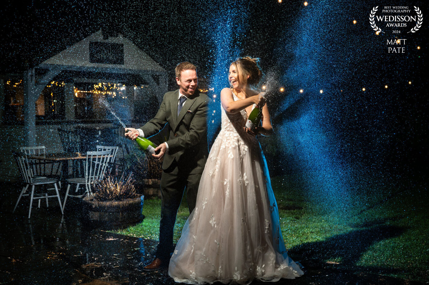 I was absolutely shattered by this time in the evening at Anna & Jamie's wedding, but I had promised them a champagne shower image, so here it is. I'm creating these champagne shower images regularly now, so find it a fairly straightforward shot to set up. A light behind the couple and a groomsman holding the key light.