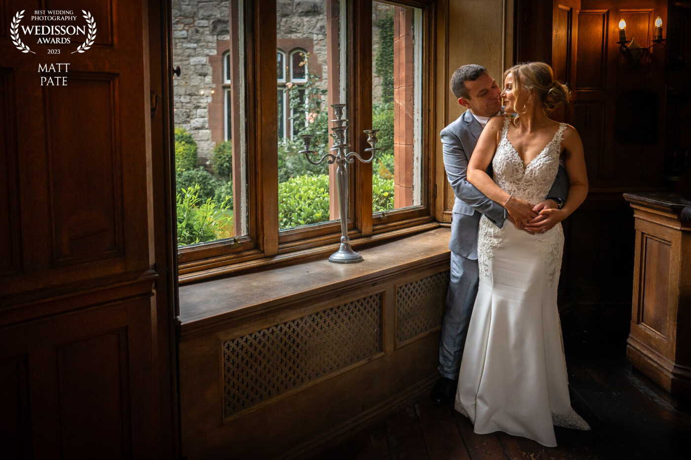102nd CollectionMel & Darren at Ruthin Castle Hotel & Spa. I saw this window light in the bar area and asked Mel & Darren if they'd like to grab a quick image, before going through for their wedding breakfast.