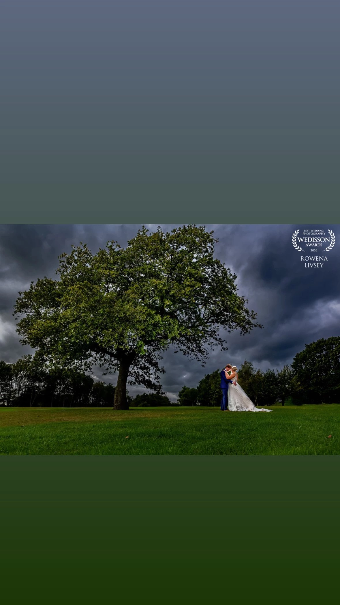 130th Collection“Guided by the power of the landscape, I wanted to capture love as a force of nature — moody, mysterious, and timeless. The stormy sky and the strength of the tree frame this moment in perfect harmony, where light and shadow meet to tell a story of connection, resilience, and love illuminated.”