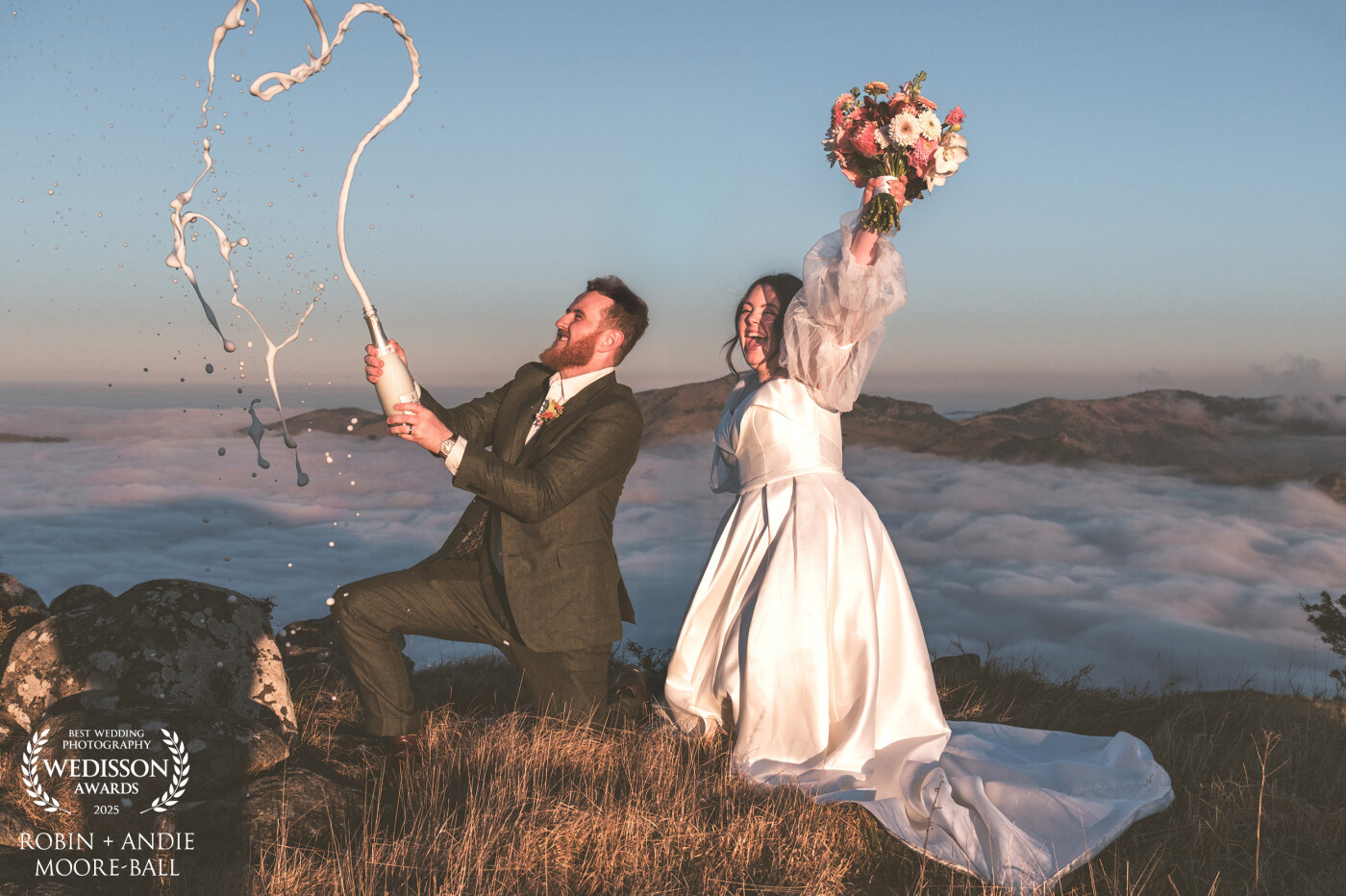 Helicopters, champagne sprays, and cloud-top views. Elopements don’t get more epic than this!